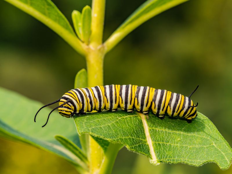 Apesar da aparência frágil, essas larvas desempenham um papel ecológico crucial. Ao longo do desenvolvimento, a coloração inicial acinzentada dá lugar a padrões marcantes em preto com anéis amarelos, característica das lagartas da espécie. Em aproximadamente três semanas, atingem seu pleno desenvolvimento.